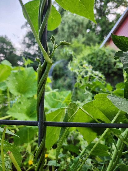 Of course I couldn't stay out of the garden though. Trellised tomatoes when I got home and took pictures. Please note that I am fully clothed and it is 89°F because the mosquitos around here view DEET as seasoning as a friend worded it earlier.